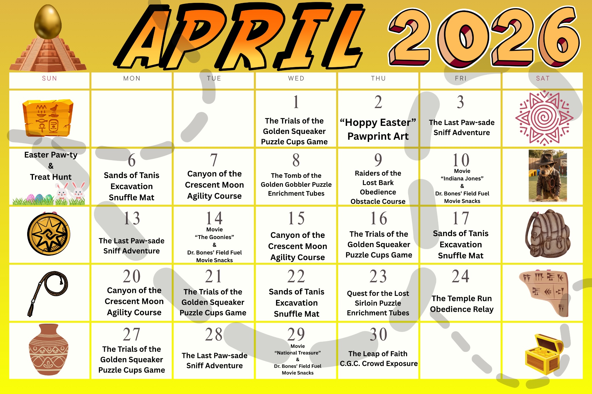 Calling all Raiders of the Lost Bark! It’s time to don the fedora and grab the leash—April 2026 at Canine Corral and Happy Tails is officially an expedition! We have a legendary month of enrichment, agility, and cinematic treats planned for your explorers. 🗺️ Your...